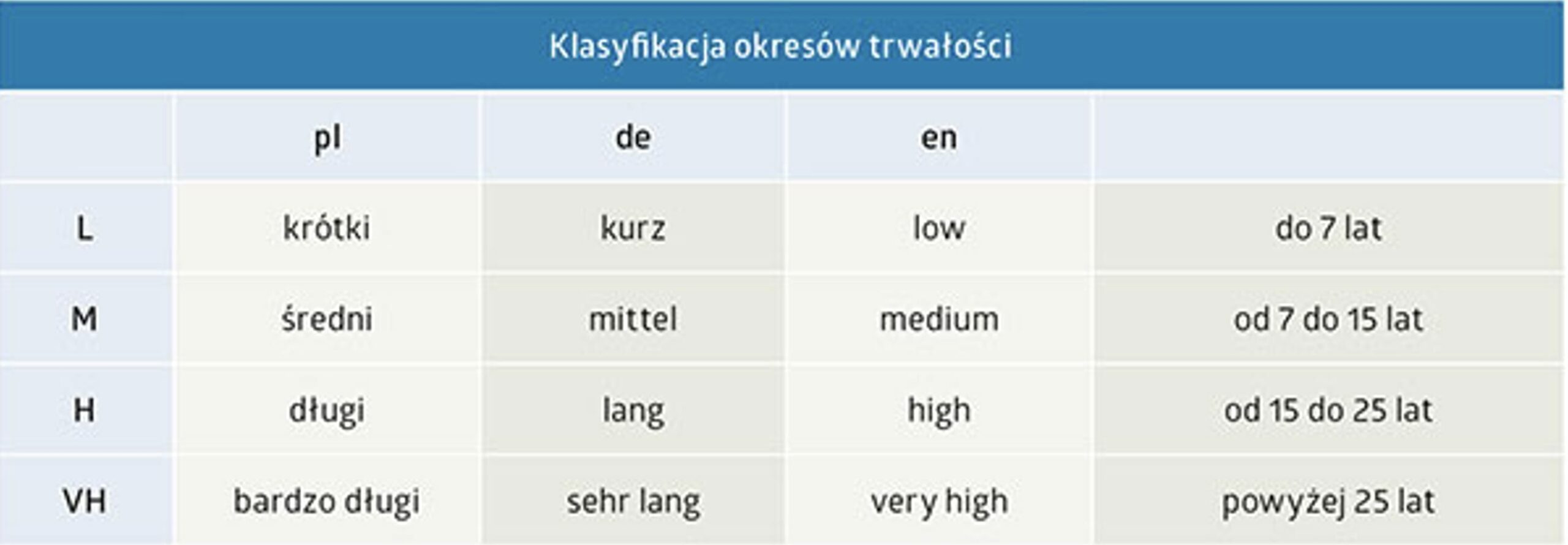 PN-EN ISO 12944-1 określa min. trwałość warstwy ochronnej w czterech okresach: